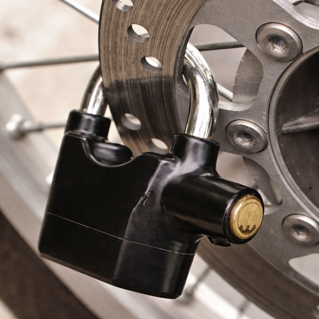 Candado con alarma antirrobo para moto – 110 dB. Si alguien la toca, suena durísimo y llama la atención al instante.